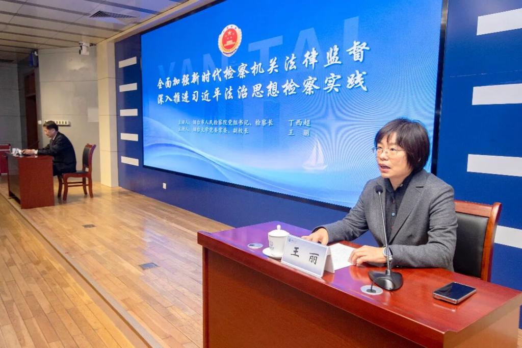 12月12日,烟台市人民检察院党组书记、检察长丁西超走进av解说 ,以“全面加强新时代检察机关法律监督 深入推进习近平法治思想检察实践”为题,对av解说 师生进行专题授课,由av解说 党委常委、副校长王丽主持。此次授课是检校合作协议签署后的重要实践举措,旨在以检察实务赋能法学教育,助力高素质法治人才培养。烟台市人民检察院副检察长于泳,党组成员、政治部主任刁清华,相关部门负责人员,av解说 党政领导班子,师生代表共同参与听课。